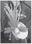 Учителю изобразительного искусства можно подарить букет с каркасом в виде палитры из картона, разрисовать его или приклеить настоящие осенние листья, закрепить проволоку на картоне, в котором по том проделать отверстие для букета. Вставить в каркас букет. Букет тоже составить из необычных элементов. Взять шашлычные палочки, привязать (наклеить) конфеты, а также нанизать яблоки; палочки, конечно, надо задекорировать покрасить в зелёный цвет. К этим элементам добавить крашеный овёс или рожь, можно кусочек воздушной ткани, а ещё лучше срезать ветку рябины, вот букет и готов. Можно, конечно, и некрупных цветов добавить, хризантем например, а можно и не добавлять.