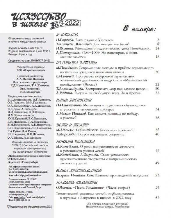 ТЕМАТИЧЕСКИЙ УКАЗАТЕЛЬ СТАТЕЙ, опубликованных в журнале «Искусство в школе» в 2022 году