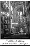 Она представляет собой что-то вроде контура одноярусного иконостаса, в который вставлены небольшие скульптуры. Правда, находится преграда не в нижней, а в верхней части алтарной арки. Это зримое подтверждение того, что сплошной иконостас не родился органично из алтарной преграды, а просто занял её место. Его появление имеет свои причины, но с храмом как целостностью, микрокосмом он мало связан. Интерьер любого храма протестует против сплошной поперечной перегородки в нём.