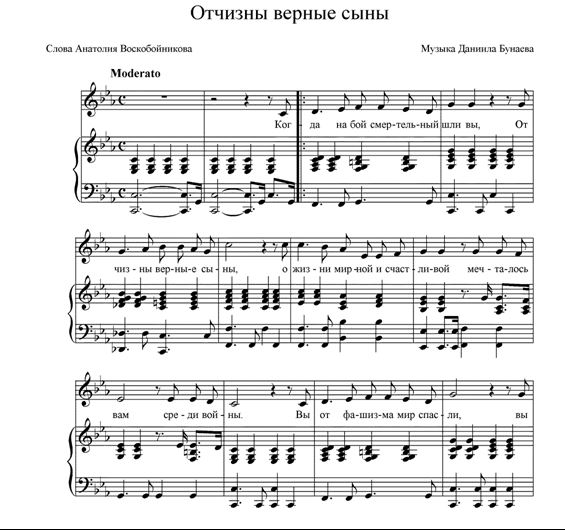 Первая песня, которая была опубликована во втором номере журнала, – «Отчизны верные сыны». Её автор – Даниил Бунаев (12 лет), ученик 5 класса хорового отделения московской школы искусств «Вдохновение». Вместе с хором «Камертон» он является лауреатом областных и зональных хоровых конкурсов и фестивалей. Всё свободное время проводит за фортепиано, сочиняет, импровизирует. Изучает немецкий и английский языки, очень любит что-то мастерить.