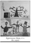 Галина Алексеевна Рождественская высказывала мысль, что в детях сохраняется неповторимая история человечества. Действительно, в некоторых рисунках чувствуется тяготение к историческим корням. Замечательны в этом отношении работы Иры Мамоновой. Особенно её работа «Фонтан» (2013г.). Она как будто снята со стены какого-нибудь российского монастыря. А работа её подружки Веры Курочкиной «На горке» напоминает ранних голландцев.