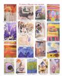 Начну с самых абстрактных. Работы Лизы Троценко и Артура Вершинина так и называются «Абстракция», другого названия не придумали. Это просто цветные линии, но они такие живые, как бы взятые из природы; по ним, думается, может развиться какой-нибудь росток ползущего растения. Другая картина Артура «Деревья» - как продолжение первой. Линии уже стали напоминать ветви деревьев. «Растительная композиция» Ани Окуджавы - здесь уже ясно видно растение, которое тихонько колышет ветерок. Вот ещё одна абстракция - «Цветная абстракция» Ариши Жевановой. Она похожа на отшлифованный срез камня или шлиф под микроскопом.
