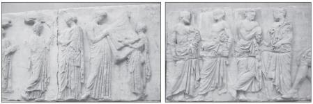 Показываем слайды с рельефами фризов Парфенона.