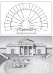 Театрон [весь театральный комплекс в совокупности] являет собой воронку, закручивающуюся вниз. Пароды [проходы между рядами амфитеатра] направляют движение к точке перехода в мир теней.