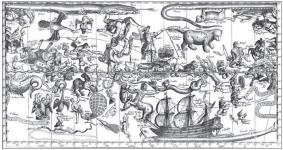 Но Южное полушарие богато созвездиями животных, поразивших мореплавателей и учёных-картографов эпохи великих географических открытий: Летучая рыба, Морская змея, Тукан, Райская птица. Созвездиями Журавля, Жирафа, Феникса, Тукана мы обязаны голландскому богослову, астроному и картографу Петеру Планциусу (1552–1622). В 1594 году он выпустил в свет знаменитую карту известного мира Orbis terrarum typus de integro multis in locis emendatus — первый картографический свод известных к тому времени земель, украшенный аллегорическими многофигурными сюжетами.