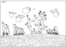 Юния рисует с двух с половиной лет, вернее будет сказать, что она создаёт свой мир – мир собак, в том числе человекообразных, и всевозможных животных (людей изображает крайне редко). Я веду блог на Фейсбуке, где в течение последних трёх лет ежедневно публикую 2-3 новых работы Юнии, а иногда видео. К письму прилагаю несколько рисунков за последние два-три месяца, чтобы Вы могли составить некоторое представление. А также обложку небольшой книжки, которую Юния проиллюстрировала. Рисует линером, сразу набело, раскрашивать не любит, говорит, что это скучно и долго. Вот адреса её страниц: https://www.alex.ground.58