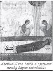 Слайд. Клеймо «Тело Глеба в пустыне между двумя колодами».