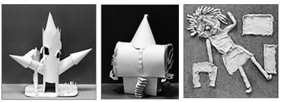 Задачи: Проявить знания, умения и навыки работы с бумагой (выразительный силуэт, прорезание "форточек", работа с впитывающей бумагой, преломление плоскостей). Создать объёмное решение объекта. закрепить навыки работы в коллективе.