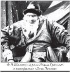 В разгар Первой мировой войны в кинематограф пришёл самый именитый театральный "варяг" – Фёдор Шаляпин, уже всемирно признанный певец. Явление на отечественном экране Солиста Его Императорского Величества обозначило исключительную веху национального искусства – рождение фильма-оперы, качественно новой духовной ценности, не имеющей аналогов в предшествующей визуальной культуре. Киноведческий термин сформировался в последующие десятилетия, а чуткая театральная критика Серебряного века объявила о начале "новой эры в немом царстве победоносного Кино". Первенцем жанра стала кинолента "Царь Иван Васильевич Грозный" по опере "Псковитянка" Николая Римского-Корсакова с Шаляпиным в заглавной роли. (В прокате картина значилась и как "Дочь Пскова", "Псковитянка"). Несколько лет картина пожинала лавры на просторах России, а сегодня бесценные шаляпинские киномгновения украшают отечественный архивный фонд.