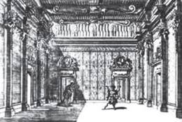 Педагоги спрашивают группу, в каком культурно-историческом пространстве она теперь оказалась. Как правило, особых затруднений не возникает, и, минуя другие варианты, группа называет придворную культуру Франции XVII века и короля Людовика. Условимся, что эта мизансцена соответствует церемониальному порядку дворца.