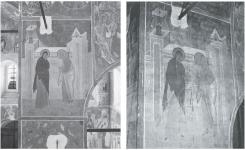 На второй фреске запечатлен трудный момент - появление Марии перед Иосифом после пребывания ее в доме родственников; Иосиф впервые видит, что Мария готовится стать матерью. Если у Холдина ярко передан драматизм этого момента, то на другой съемке мы видим просто две мутные рядом стоящие фигуры с кривыми нимбами. Думаю, этих примеров достаточно.