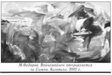 Многие из своих работ Михаил Фёдоров посвятил сюжетам из карело-финского поэтического эпоса «Калевала». В современной школе на уроках литературы и МХК не изучают «Калевалу», однако картины Михаила Фёдорова – прекрасный иллюстративный материал при изучении карело-финского поэтического эпоса на факультативных занятиях или в рамках курса по изучению истории и культуры родного края. («Калевалу» как выдающийся памятник мировой литературы изучают по известной нашему читателю программе Г. Кудиной и З. Новлянской «Литература как предмет эстетического цикла». Прим. ред.)