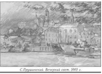 Для Сергея Прушинского, другого ученика Н.С.Соколова, Выборг не просто город, где он родился и живет, а духовное пристанище. Художник покидал родной город всего дважды. Первая разлука – пятилетняя учеба в кмухинскомя училище, вторая – два год армии в северном Заполярье, в Мурманской области. Художнику, который бегал по городским улицам еще мальчишкой, а потом почувствовал их тайны на первых пленэрах, многое дано увидеть в обыденных городских мотивах. В живописных и графических работах Прушинского, подчас непритязательных по мотиву, открывается непосредственное детское восприятие мира, завораживающий поиск идеала, мечты о всеобщей гармонии, утверждение спасительной красоты. Выборг Прушинского всегда таинственен и романтичен. Художник говорит: "Мне всегда хочется доверительным языком рассказать в своих работах о родном городе так, чтобы зрители разных возрастов смогли увидеть в них отражение своих чувств".