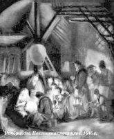 Младенца, лицо Которого обращено назад, к зрителю. Немного в стороне видна ещё фигура человека в одежде древнего философа; человек этот в левой руке держит, по-видимому, свиток, правою - указывает на звезду над Богоматерью и Младенцем.