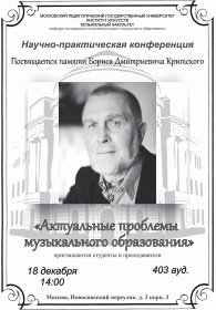 В июне 2017 г. состоялась наша последняя встреча с Учителем. В ходе той встречи мы вместе обозначили планы на следующий учебный год... Разговор быстро прервался, так как пришли другие студенты на занятие. Мы тогда не придали значения словам Бориса Дмитриевича: «Вы на правильном пути! Что бы ни было, идите всегда вперёд, дальше...» И только позже поняли, что это было прощальное напутствие Учителя. Сегодня именно эти слова вселяют в нас стремление идти дальше, развиваться. Всё, чему научил нас Борис Дмитриевич Критский, мы будем гордо нести в профессию «учитель музыки»!