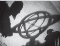 В начале фильма в лучах солнца и блеске позолоты мы видим энергичного и крайне амбициозного правителя, провозглашающего программу усиления русского государства. Симпатии зрителя в этот момент явно на стороне молодого царя. Но уже через несколько секунд на его лицо ложится двуглавая тень от скипетра, которая рождает ассоциацию с Каиновой печатью, предвещающей братоубийство (которое зритель увидит лишь в конце 2 серии фильма). Если тронная речь Ивана называет его цели, то тень указывает на средства и цену их достижения. Другая тень, отброшенная грозным царём, нависшим над астролябией, расскажет об имперских амбициях своего хозяина. Не только тени, но иконы и фрески в кадре помогают внимательному зрителю точнее понять смысл происходящего.