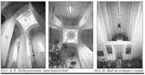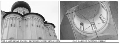 Ещё один принцип: что снаружи – то и внутри. Это значит: по членениям стен церковного здания, его сводам и барабану, на котором стоит купол, всегда, или почти всегда, можно догадаться о том, как выглядит его интерьер. Если свод снаружи полукруглый – то же самое вы увидите, войдя в храм и подняв глаза вверх (илл. 4).
