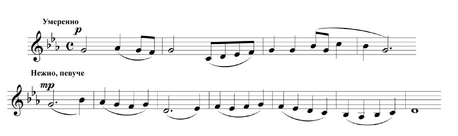 4. Знакомство с 1-й частью Симфонии № 1 В.Калинникова: исполнение (пение) главных тем экспозиции (вокализация с ориентацией на нотную запись, с.127 учебника). Определение особенностей их взаимодействия в процессе звучания музыки. Слушание экспозиции 1-й части. Анализ образного строя музыки, выявление главных образов симфонии (лирический, драматический, трагический?) по методике А.Пиличяускаса [4]. Анализ интонационно-жанровых и стилистических особенностей, средств музыкальной выразительности, приёмов развития (повтор, контраст, вариативность).