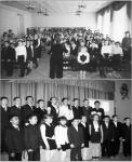 Выпускники, отслужившие в армии, приходили на праздник Дня Победы в армейской форме и вместе со всем залом исполняли песни «День Победы», «Венский вальс», «На Вас мы равнение держим», «Моя Москва».