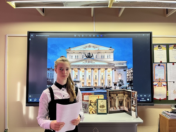 Татьяна Сергеевна Петрова, учитель русского языка и литературы, акцентировала внимание учащихся на значимости Государственного Большого театра как центре притяжения лучших сил русского оперного и балетного искусства. В марте 2026 года Большому театру исполнится 250 лет.«Geniusloci» («Гений места») Большого театра связан с великими именами русского и мирового искусства.