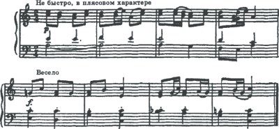 Приведем простые примеры. Одно из наиболее устоявшихся и очевидных мнений касается эмоционального значения мажора и минора: мажор выражает радостное, приподнятое настроение, минор - грустное, печальное, подавленное. Теперь возьмём одно из простейших упражнений музыкального движения, которое называется «Пружинки» на музыку русской народной песни «Посеяли девки лён» (обработка Т. Ломовой).