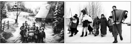 Д. Колядовать начинали во время Святок. Святки – сокращённое название святых дней между двумя великими праздниками – Рождеством и Крещением.