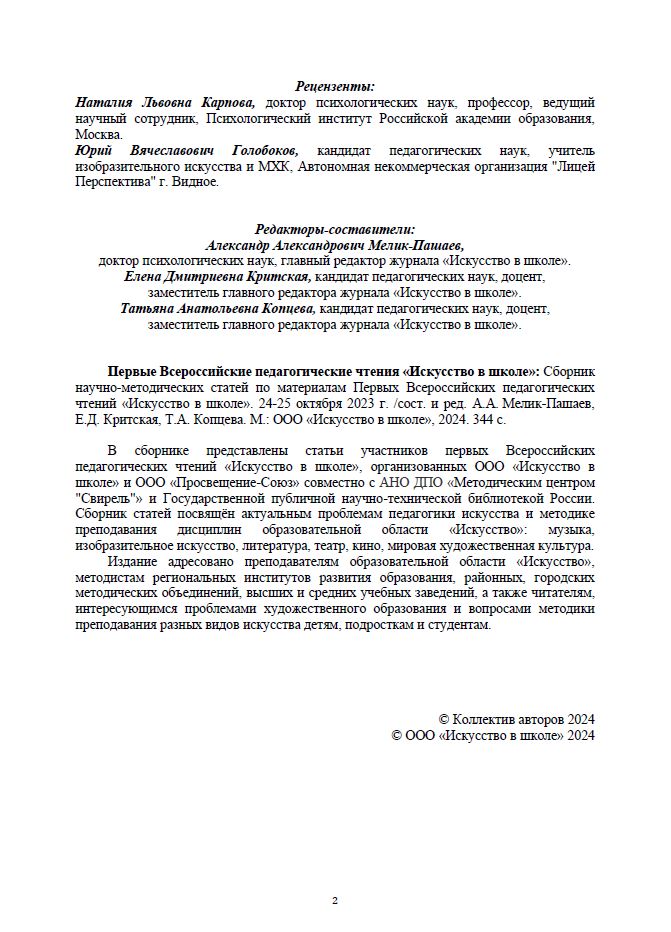 ► Сборник материалов Первых Всероссийских педагогических чтений "Искусство в школе".