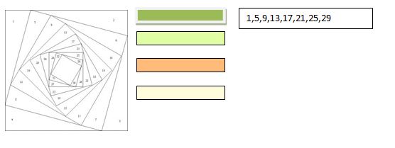 - А теперь дело вкуса: подбираем гармоничное сочетание цветов для размещения от углов по спирали. Фото №1