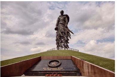 Сам памятник представляет собой символ мужественности и самопожертвования. Выбор места его возведения неслучаен. Исследуя художественный образ Ржевского мемориала Советскому солдату, я узнала, что памятник установлен на месте одной из самых кровопролитных битв Великой Отечественной войны. Здесь в ходе изматывающих боев за Ржев в течение 14 месяцев с 8 января 1942 года по 31 марта 1943 года погибло около 776 889 человек Красной Армии. Эта битва считалась главной неудачей советского командования. После масштабных сражений территорию Ржевско-Вяземского выступа, где проходили бои, неофициально окрестили «Долиной смерти». «Многие из бойцов так и остались лежать в местных лесах и болотах. До сих пор на мемориальном кладбище в Ржевском районе Тверской области ежегодно торжественно хоронят останки солдат» [1].