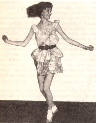 В VIII классе решение этой задачи развивалось в теме года «К танцу через зримый образ». Среди различных практических заданий художественного тренинга были такие: всматриваясь в репродукцию картины, нужно попытаться ее «озвучить» и описать характер пластических движений ее персонажей; попытаться самому выразить пластику движений, самостоятельно описываемых; попробовать записать движения самостоятельно сочиненного танца протяженностью четыре такта в размере с тем, чтобы можно было воспроизвести его через некоторое время; выбрать из накопленного багажа танцевальных движений те, которые помогают выразить ритмику джазовой музыки (регтайм, блюз).