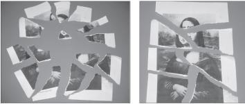 Надо заметить, что всё изложение идет на фоне видеоряда: на экране огромная репродукция "Джоконды", затем она постепенно предстаёт разорванной сначала на крупные куски, затем всё мельче и мельче, в завершение - огромная улыбка во весь экран, а потом - вновь "Джоконда" целая и невредимая. В условиях современной компьютеризации подобный ряд сделать несложно, а сила эмоционального воздействия на детей - огромна.