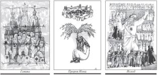 Когда я принесла его своей редакторше, она сказала: "Он у вас слишком еврейский. Сделайте его более русским". Русским я его сделать не могла, но что-то изменила, и он прошёл. Но мне захотелось вернуть ему первоначальные черты. Я вернула, и вдруг захотела сделать ещё одного Моисея – перед неопалимой купиной, потом Авраама. В общем, пророки начали из меня просто "выпрыгивать". Я их делала без эскиза, день и ночь, будто прорвалась плотина. Лето было страшно жаркое, горели леса под Москвой, я жила в деревне, где на вытянутую руку от дыма ничего видно не было. Нужно было в сидеть в запертой комнате с окнами, завешенными мокрыми простынями. 40 градусов жары, дым, выйти можно только ночью. Я ничего не замечала и, как сумасшедшая, рисовала пророков.