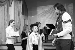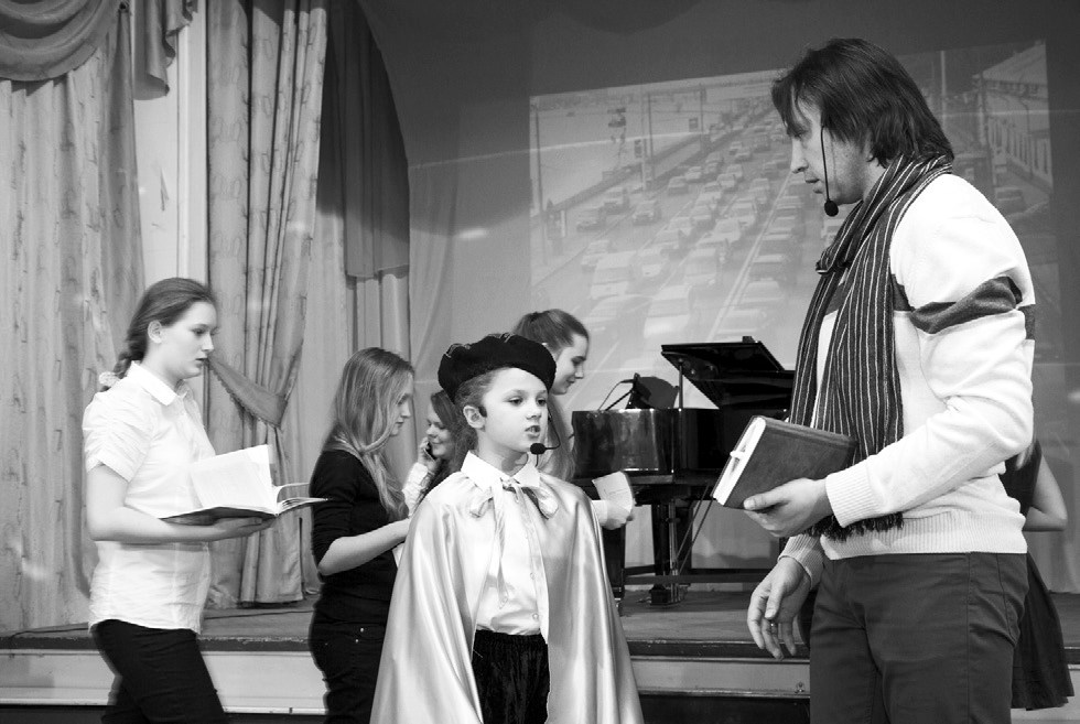 Берёт карандаши, раздаёт ребятам в зале, а пока они рисуют, на сцене хоровой коллектив исполняет «Песню о земле». Маленький принц собирает рисунки в зале.