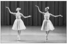 Смотрим видеофрагмент балета, обращая внимание на технику танца (полуподдержки, работа рук танцовщицы), а также на головной убор, имитирующий чувствительные (сенсорные) усики бабочки, называемые антеннами; и ажурные крылышки - «сковородочки», что украшают шопеновскую пачку).