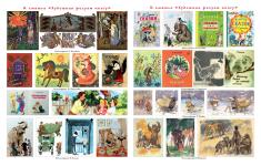 Художники-иллюстраторы придумывают и конструкцию книжки, её оформление от начала до конца, расположение в ней иллюстраций, текста, буквиц. Иллюстрации могут быть разными по величине: большие - во всю страницу или даже разворот страниц, маленькие - среди текста или сбоку, на полях. Некоторые художники сами придумывают рассказы, сказки, стихи и к ним делают рисунки (Показывает работы Е.И. Чарушина, В.Г. Сутеева).